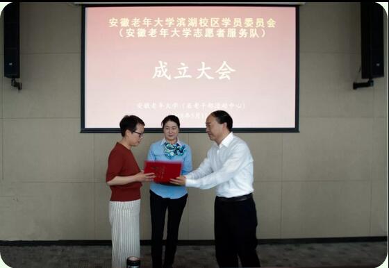 会上,老年大学办公室主任、教学管理处处长阮永发宣读了《关于成立安徽老年大学滨湖校区学员委员会(安徽老年大学志愿者服务队)的通知》,教学管理处副调研员隋红军宣读安徽老年大学滨湖校区第一届学员委员会(安徽老年大学志愿者服务队)委员名单及学委会领导拟任名单,教学管理处副处长易国能宣读《安徽老年大学滨湖校区第一届学员委员会(安徽老年大学志愿者服务队)章程》。 夏小飞为学委会代表颁发聘书。新任学委会主席应作梅表态发言。