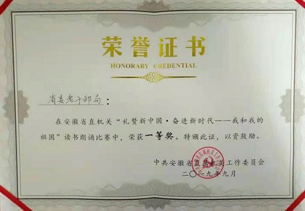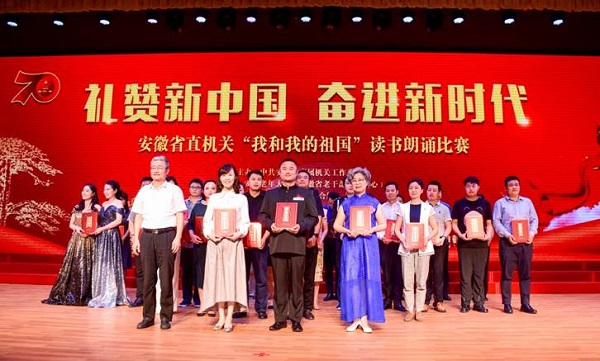 9月19日,安徽省直机关“礼赞新中国•奋进新时代——我和我的祖国”读书朗诵比赛隆重举行。省委老干部局选送田霖珠、胡林两位老年学员参加了比赛。比赛过程中,两位选手在顾献忠、邱成广和周典义现场伴奏下,带着炽热的爱国之情,用富有感染力的嗓音,声情并茂地演绎了配乐朗诵《月光下的中国》,充分展现了新时代老年大学学员老有所学、老有所为、“皖情筑梦”的新风采,节目荣获总分第一,省委老干部局荣获一等奖。