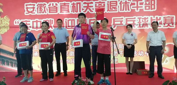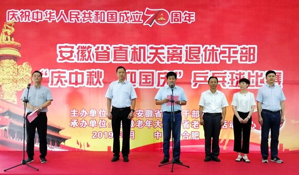 为庆祝中华人民共和国成立70周年,丰富离退休干部文化生活,9月19日至20日,省委老干部局在省老干部活动中心举办省直机关离退休干部“庆中秋 迎国庆”乒乓球比赛,激励广大离退休干部喝彩新中国、礼赞新时代。省委组织部副部长、老干部局局长夏小飞到比赛现场亲切看望老同志,省委老干部局副局长孙来友出席开幕式并致辞,省委老干部局服务保障处、安徽老年大学各处室负责同志参加开幕式。