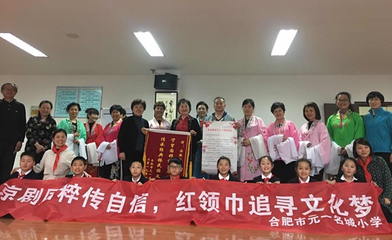 为进一步弘扬社会正能量,4月9日上午,安徽老年大学艺术团团长靳长霞和京剧名家路大东、京剧老师王文康及京剧队学员们在芜湖路校区与合肥市元一小学的师生们开展了红领巾追梦国粹京剧艺术交流活动。