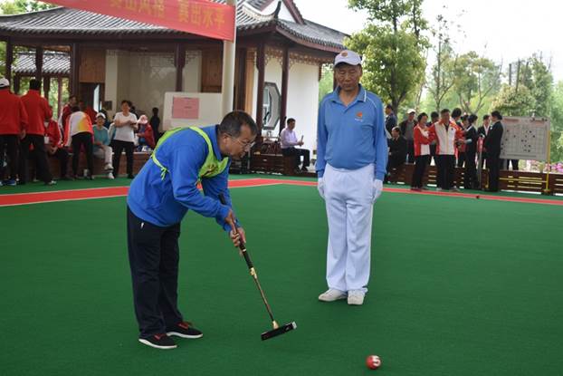 夏小飞为门球赛开球